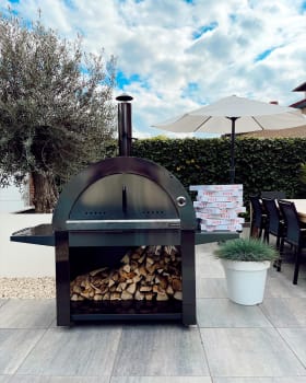 Täydennä pihakeittiösi pizzauunilla, Tarjoa vieraillesi upeita makuelämyksiä paistamalla pizzoja, leipiä, piirakoita ja makeita jälkiruokia muutamassa minuutissa. Myoutdoorkitchen Black Collection -malliston pizzauunit on valmistettu 304 SS ruostumattomasta teräksestä ja viimeistelty ylellisellä antrasiitinharmaalla pinnalla. Pizzauuneja on saatavana erin kokoisina.