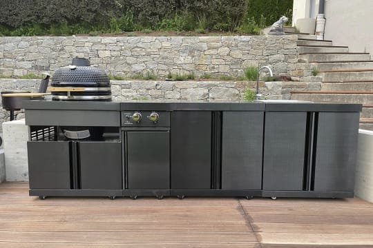 Korostat helposi pihaasi ilmettä ylellisellä, erittäin arvostetun Black Collection -malliston pihakeittiöllä. Myoutdoorkitchen Black Collection on yksilöllinen pihakeittiösarja, jossa on hienostunut antrasiitinvärinen viimeistely.